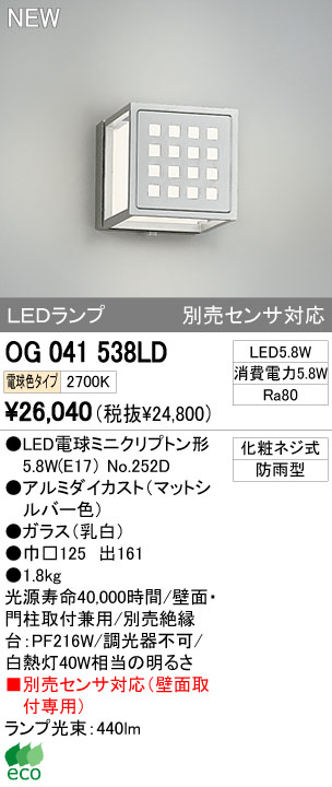 ODELIC ¥ª¡¼¥Ç¥ê¥Ã¥¯ LED¥¢¥¦¥È¥É¥¢ OG041538LD