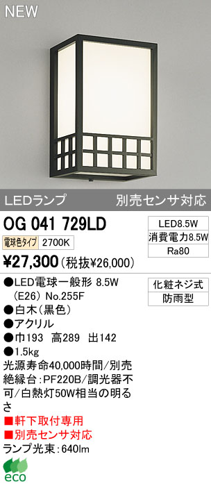 ODELIC ¥ª¡¼¥Ç¥ê¥Ã¥¯ LED¥¢¥¦¥È¥É¥¢ ÏÂÉ÷¾ÈÌÀ OG041729LD