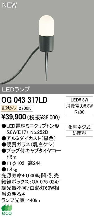 ODELIC ¥ª¡¼¥Ç¥ê¥Ã¥¯ LED¥¢¥¦¥È¥É¥¢ OG043317LD