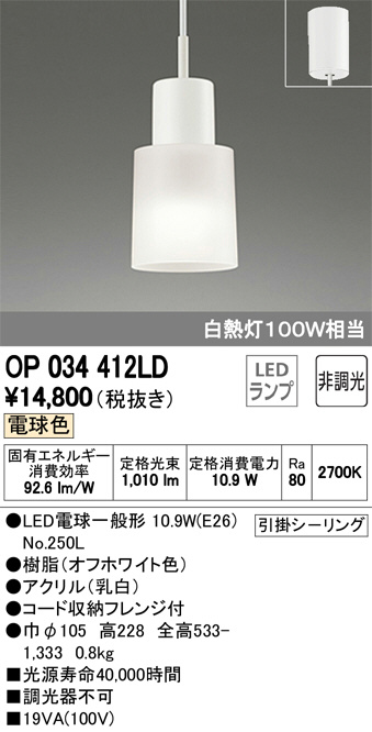ODELIC ¥ª¡¼¥Ç¥ê¥Ã¥¯ ¥Ú¥ó¥À¥ó¥È¥é¥¤¥È OP034412LD