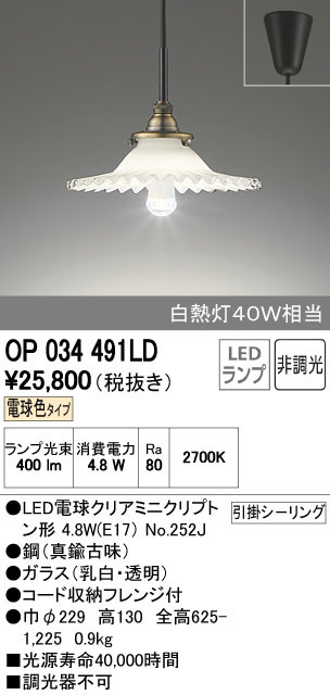 ODELIC ¥ª¡¼¥Ç¥ê¥Ã¥¯ ¥Ú¥ó¥À¥ó¥È¥é¥¤¥È OP034491LD