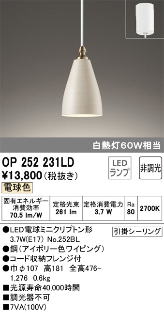 ODELIC ¥ª¡¼¥Ç¥ê¥Ã¥¯ ¥Ú¥ó¥À¥ó¥È¥é¥¤¥È OP252231LD