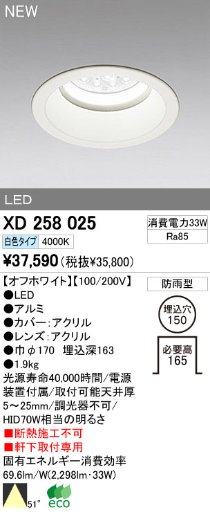 ODELIC ¥ª¡¼¥Ç¥ê¥Ã¥¯ LED¥¢¥¦¥È¥É¥¢ ¥À¥¦¥ó¥é¥¤¥È XD258025