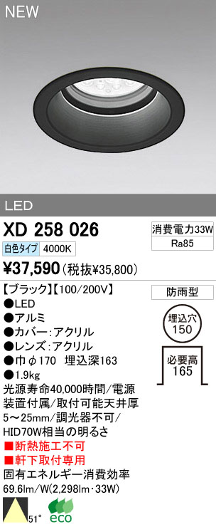 ODELIC ¥ª¡¼¥Ç¥ê¥Ã¥¯ LED¥¢¥¦¥È¥É¥¢ ¥À¥¦¥ó¥é¥¤¥È XD258026