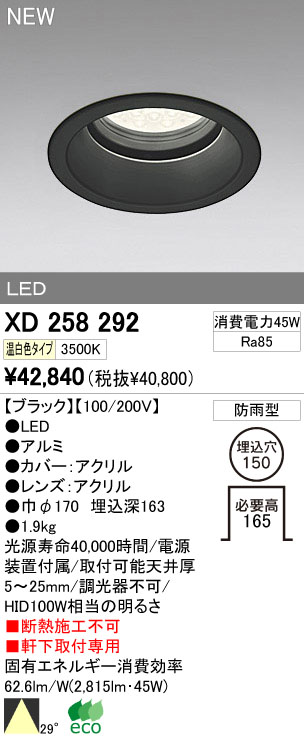 ODELIC ¥ª¡¼¥Ç¥ê¥Ã¥¯ LED¥¢¥¦¥È¥É¥¢ ¥À¥¦¥ó¥é¥¤¥È XD258292