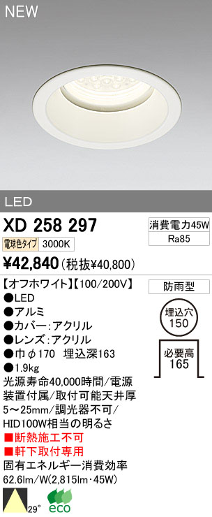 ODELIC ¥ª¡¼¥Ç¥ê¥Ã¥¯ LED¥¢¥¦¥È¥É¥¢ ¥À¥¦¥ó¥é¥¤¥È XD258297