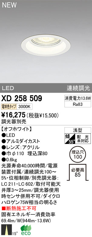 ODELIC ¥ª¡¼¥Ç¥ê¥Ã¥¯ LED¥À¥¦¥ó¥é¥¤¥È XD258509