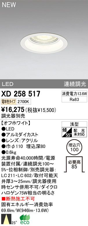 ODELIC ¥ª¡¼¥Ç¥ê¥Ã¥¯ LED¥À¥¦¥ó¥é¥¤¥È XD258517