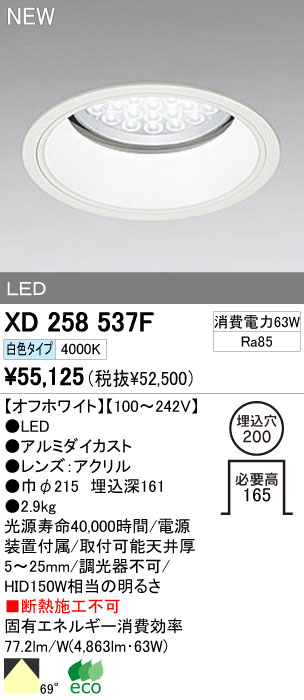 ODELIC ¥ª¡¼¥Ç¥ê¥Ã¥¯ LED¥À¥¦¥ó¥é¥¤¥È XD258537F