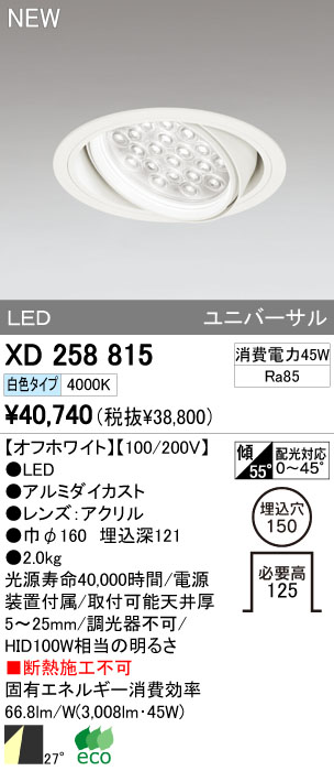 ODELIC ¥ª¡¼¥Ç¥ê¥Ã¥¯ LED¥À¥¦¥ó¥é¥¤¥È XD258815