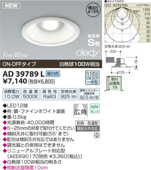 ¥³¥¤¥º¥ß¾ÈÌÀ KOIZUMI LED¹âµ¤Ì©¥À¥¦¥ó¥é¥¤¥È AD39789L