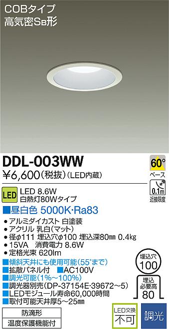 DAIKO Âç¸÷Åŵ¡ LED¥À¥¦¥ó¥é¥¤¥È(¸®²¼·óÍÑ) DDL-003WW