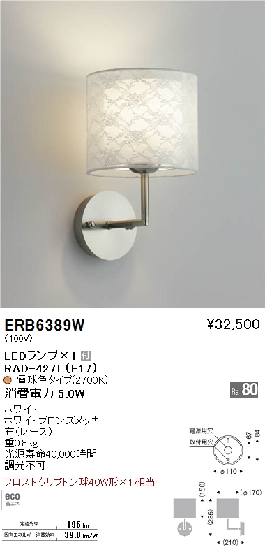 ±óÆ£¾ÈÌÀ ENDO LED ¥Ö¥é¥±¥Ã¥È ERB6389W