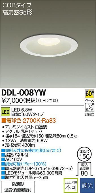 DAIKO Âç¸÷Åŵ¡ LED¥À¥¦¥ó¥é¥¤¥È(¸®²¼·óÍÑ) DDL-008YW