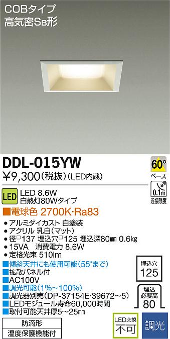 DAIKO Âç¸÷Åŵ¡ LED¥À¥¦¥ó¥é¥¤¥È(¸®²¼·óÍÑ) DDL-015YW