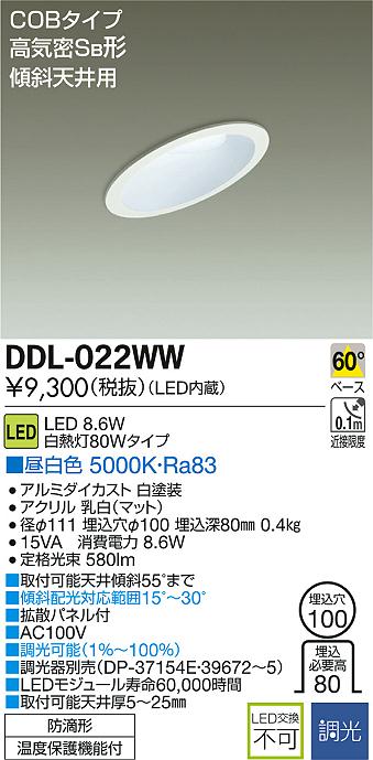 DAIKO Âç¸÷Åŵ¡ LED¥À¥¦¥ó¥é¥¤¥È(¸®²¼·óÍÑ) DDL-022WW
