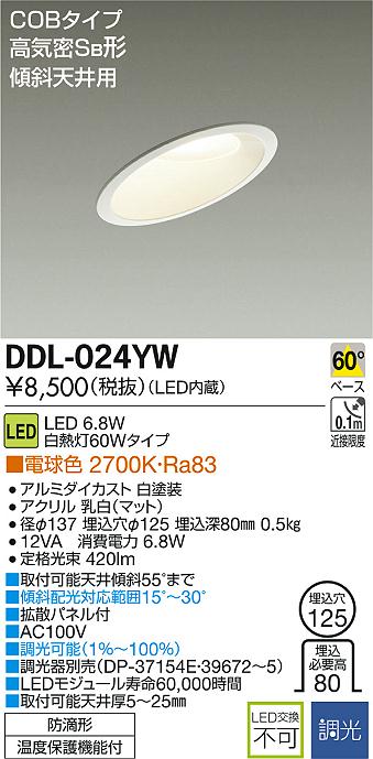 DAIKO Âç¸÷Åŵ¡ LED¥À¥¦¥ó¥é¥¤¥È(¸®²¼·óÍÑ) DDL-024YW