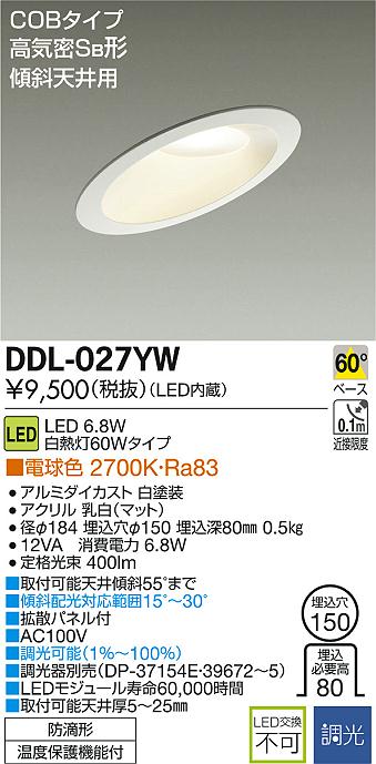 DAIKO Âç¸÷Åŵ¡ LED¥À¥¦¥ó¥é¥¤¥È(¸®²¼·óÍÑ) DDL-027YW