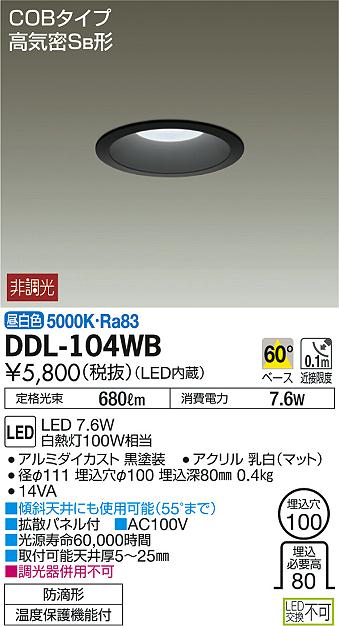 DAIKO Âç¸÷Åŵ¡ LED¥À¥¦¥ó¥é¥¤¥È(¸®²¼·óÍÑ) DDL-104WB