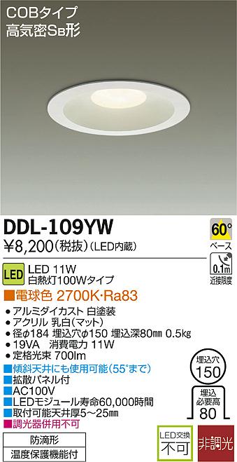 DAIKO Âç¸÷Åŵ¡ LED¥À¥¦¥ó¥é¥¤¥È(¸®²¼·óÍÑ) DDL-109YW