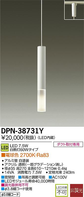 DAIKO Âç¸÷Åŵ¡ LED¾®·¿¥Ú¥ó¥À¥ó¥È DPN-38731Y