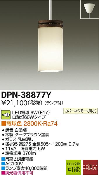 DAIKO LED¾®·¿¥Ú¥ó¥À¥ó¥È DPN-38877Y