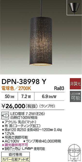 DAIKO Âç¸÷Åŵ¡ ¾®·¿¥Ú¥ó¥À¥ó¥È DPN-38998Y