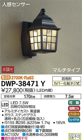 DAIKO Âç¸÷Åŵ¡ ¿Í´¶¥»¥ó¥µ¡¼ÉÕ¥¢¥¦¥È¥É¥¢¥é¥¤¥È DWP-38471Y