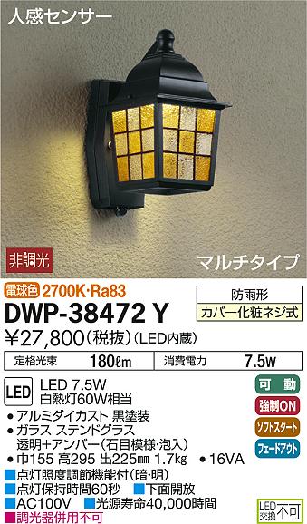 DAIKO Âç¸÷Åŵ¡ ¿Í´¶¥»¥ó¥µ¡¼ÉÕ¥¢¥¦¥È¥É¥¢¥é¥¤¥È DWP-38472Y