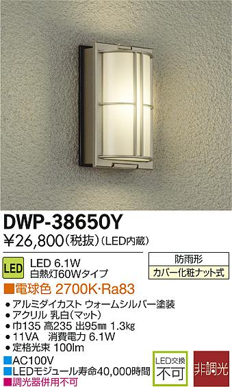 DAIKO Âç¸÷Åŵ¡ LED¥¢¥¦¥È¥É¥¢¥é¥¤¥È DWP-38650Y