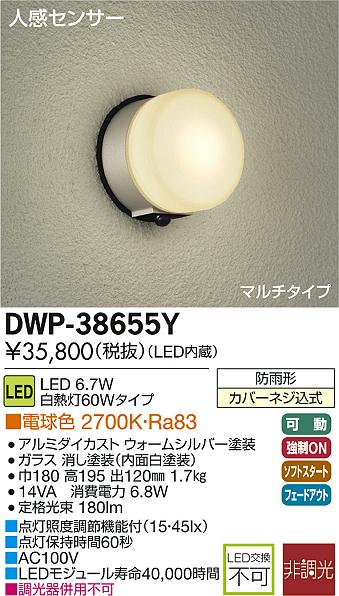 DAIKO Âç¸÷Åŵ¡ ¿Í´¶¥»¥ó¥µ¡¼ÉÕLED¥¢¥¦¥È¥É¥¢¥é¥¤¥È DWP-38655Y