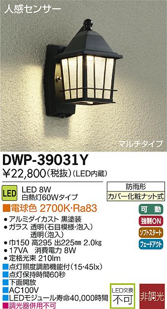 DAIKO ¿Í´¶¥»¥ó¥µ¡¼ÉÕLED¥¢¥¦¥È¥É¥¢¥é¥¤¥È DWP-39031Y