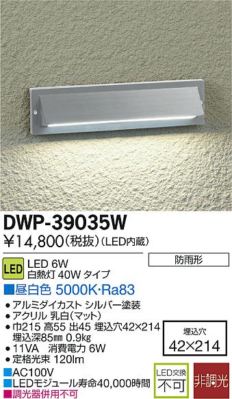DAIKO Âç¸÷Åŵ¡ LED¥¢¥¦¥È¥É¥¢¥Õ¥Ã¥È¥é¥¤¥È DWP-39035W