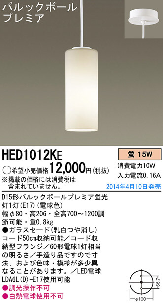 Panasonic ¥Ú¥ó¥À¥ó¥È¥é¥¤¥È HED1012KE