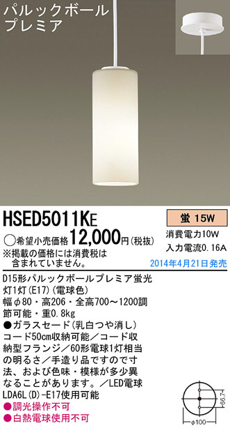 Panasonic ¥Ú¥ó¥À¥ó¥È¥é¥¤¥È HSED5011KE