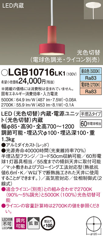 Panasonic LED ¥Ú¥ó¥À¥ó¥È¥é¥¤¥È LGB10716LK1