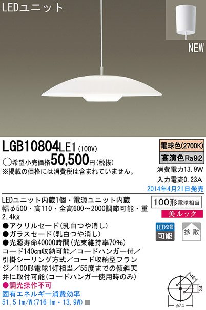 Panasonic LED¥Ú¥ó¥À¥ó¥È¥é¥¤¥È LGB10804LE1