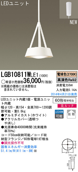 Panasonic LED¥Ú¥ó¥À¥ó¥È¥é¥¤¥È LGB10811WLE1