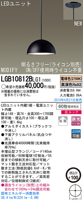 Panasonic LED¥Ú¥ó¥À¥ó¥È¥é¥¤¥È LGB10812BLG1