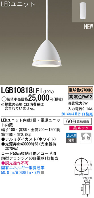 Panasonic LED¥Ú¥ó¥À¥ó¥È¥é¥¤¥È LGB10818LE1