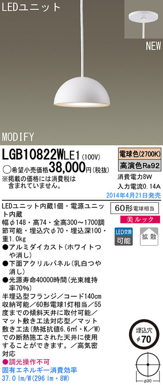 Panasonic LED¥Ú¥ó¥À¥ó¥È¥é¥¤¥È LGB10822WLE1