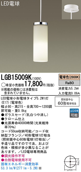 Panasonic LED ¥Ú¥ó¥À¥ó¥È¥é¥¤¥È LGB15009K