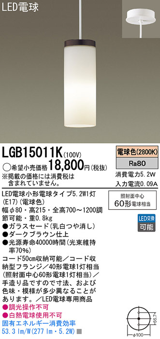Panasonic LED ¥Ú¥ó¥À¥ó¥È¥é¥¤¥È LGB15011K