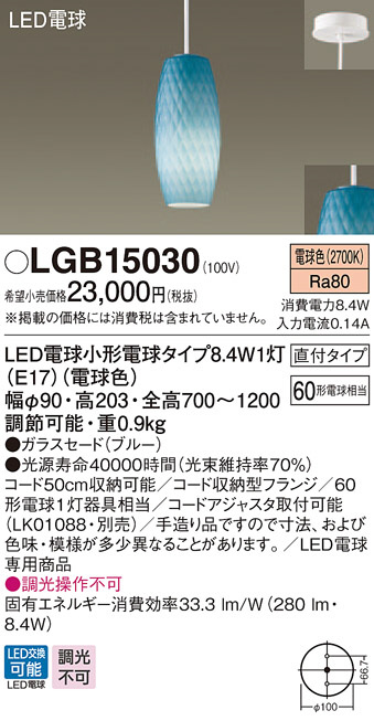 Panasonic LED ¥Ú¥ó¥À¥ó¥È¥é¥¤¥È LGB15030