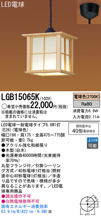 Panasonic LED ¥Ú¥ó¥À¥ó¥È¥é¥¤¥È LGB15065K
