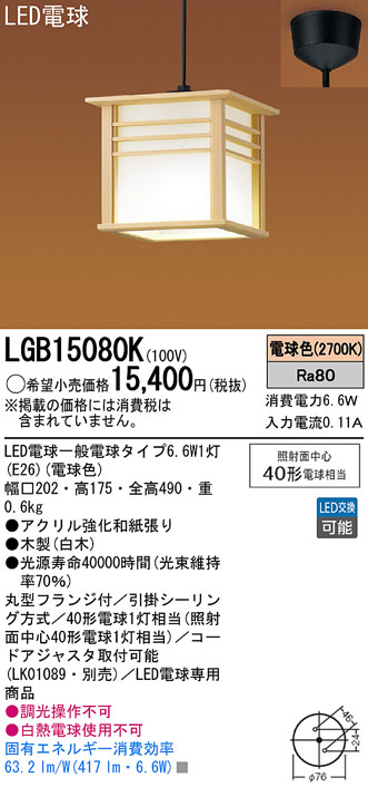 Panasonic LED ¥Ú¥ó¥À¥ó¥È¥é¥¤¥È LGB15080K