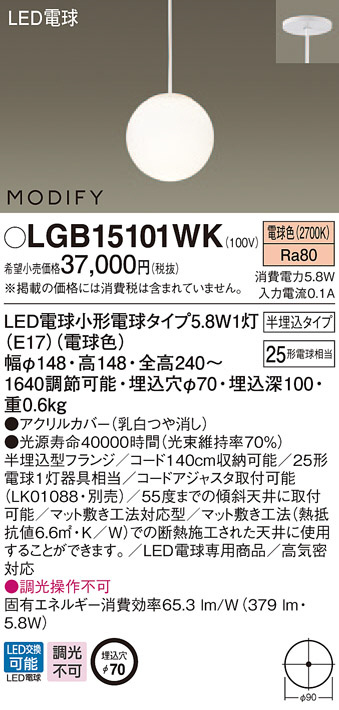 Panasonic LED ¥Ú¥ó¥À¥ó¥È¥é¥¤¥È LGB15101WK