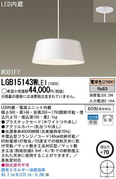 Panasonic LED ¥Ú¥ó¥À¥ó¥È¥é¥¤¥È LGB15143WLE1