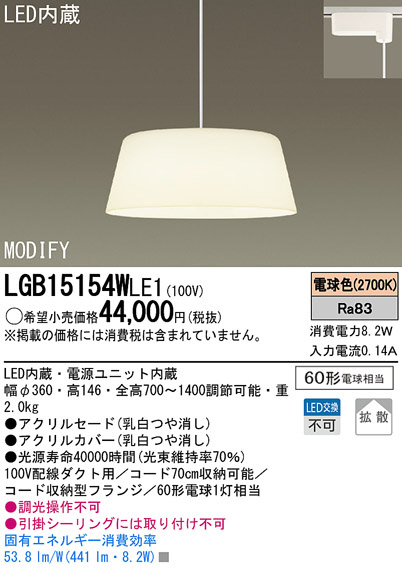 Panasonic LED ¥Ú¥ó¥À¥ó¥È¥é¥¤¥È LGB15154WLE1