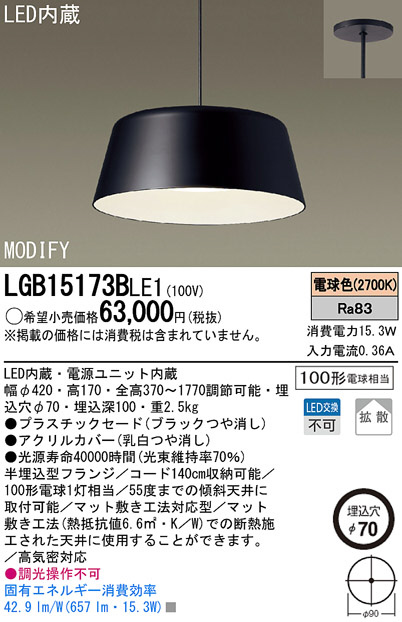 Panasonic LED ¥Ú¥ó¥À¥ó¥È¥é¥¤¥È LGB15173BLE1